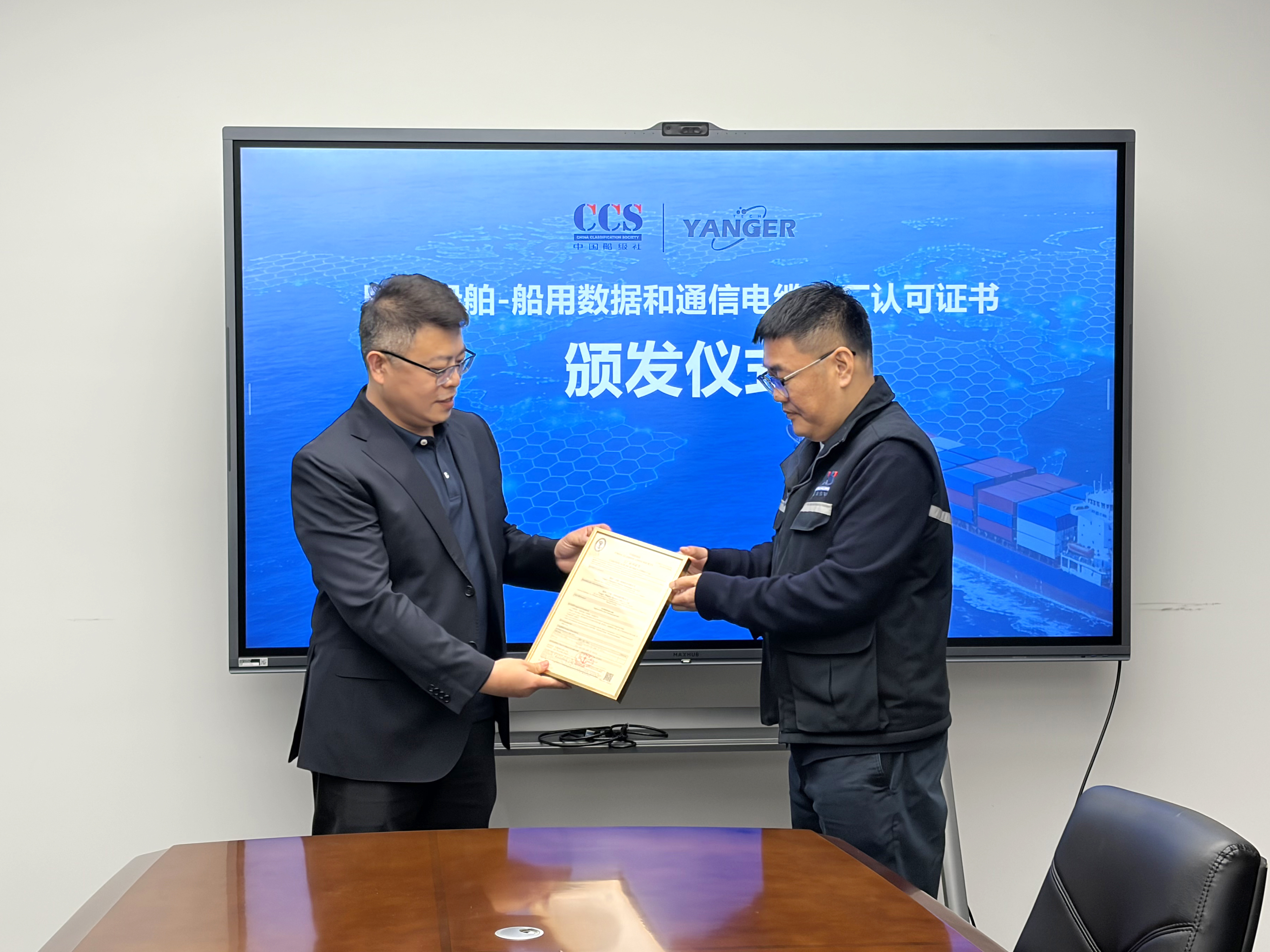 YANGER’s leadership expressed sincere appreciation for CCS’s comprehensive professional guidance throughout the process. They reviewed the collaborative journey in overcoming key technical challenges in marine network cables — including mud resistance, wide temperature range adaptability, and high transmission stability — and emphasized that this CCS certification represents the highest recognition of YANGER’s product quality and maritime compliance, serving as a new starting point for the strategic partnership between the two parties. YANGER made a solemn commitment to adhere to the expectations placed upon them by continuing to increase investment in core technology research and development, striving to create internationally competitive flagship products, and working alongside CCS to jointly promote the internationalization and high-end development of the specialized marine cable industry.