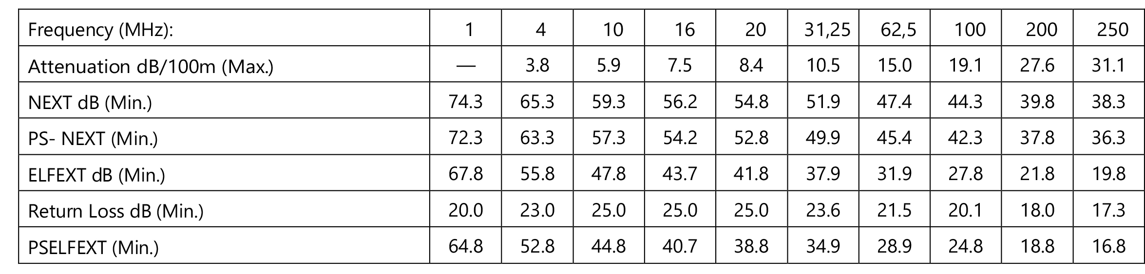 Vertraging scheefheid (4 ~ 100 MHz): ≤45ns/100m