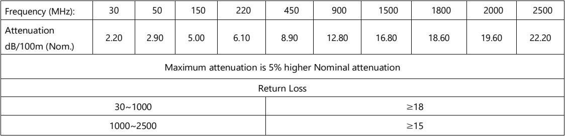 Опір постійного струму внутрішнього провідника: ≤ 4,6 Ом / км